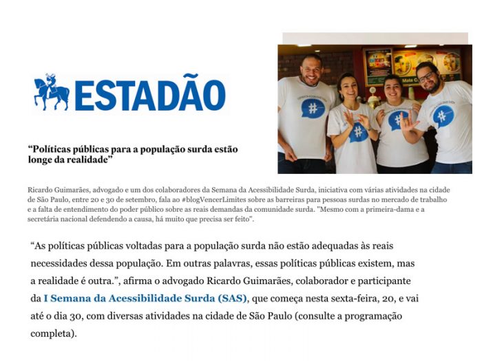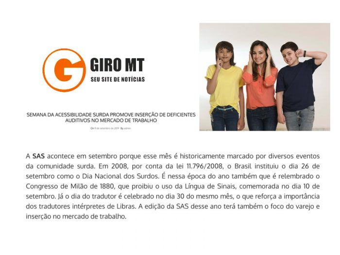 A SAS – SEMANA DA ACESSIBILIDADE SURDA foi criada para incentivar empresas de comércio e serviços a receberem com acessibilidade os clientes surdos.