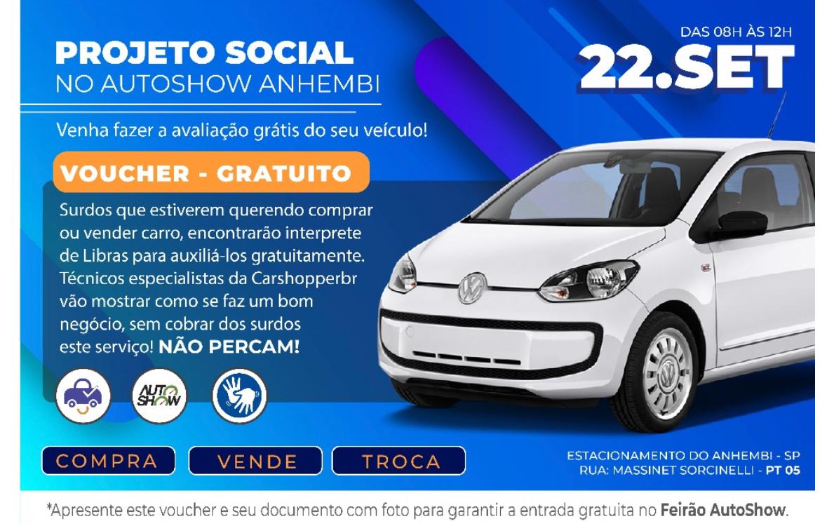 Surdos que levarem seus carros poderão fazer avaliação grátis do veículo. Surdos que estiverem querendo comprar ou vender carro, encontrarão interprete de Libras para auxilia-los gratuitamente. Técnicos especialistas da Carshopperbr vão mostrar como se faz um bom negócio, sem cobrar dos surdos este serviço! Apenas neste dia e horário, não percam!!!
