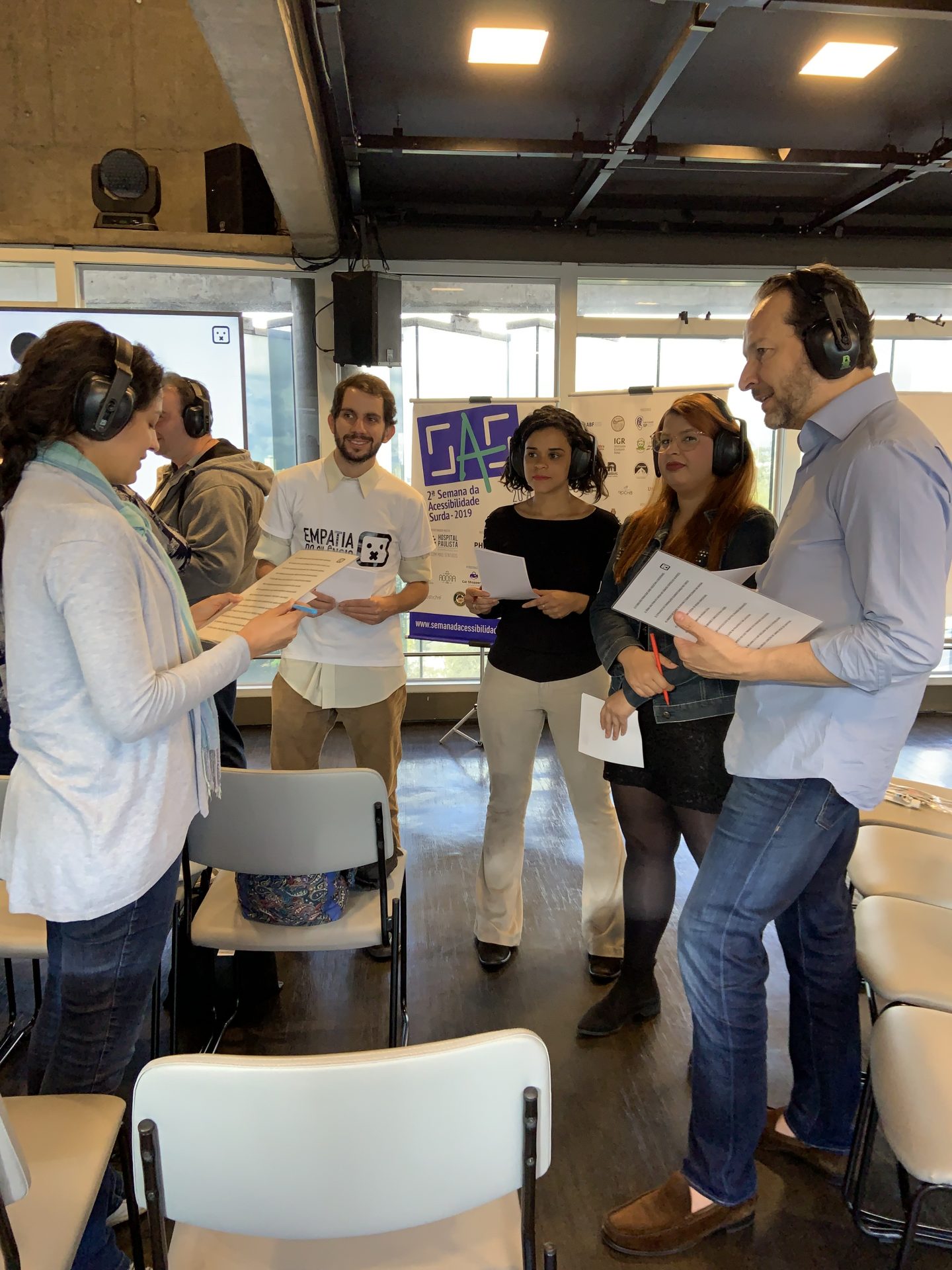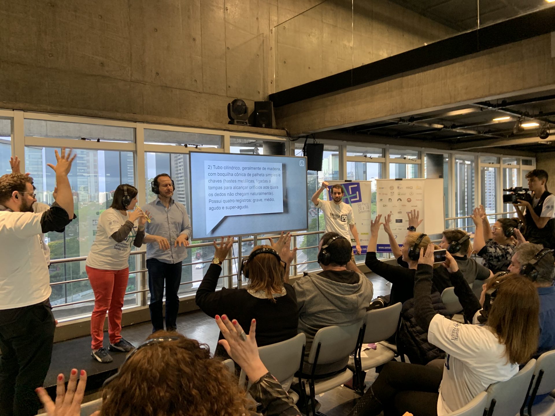 Profissionais da Imprensa e executivos das empresas patrocinadoras participarão de sessões especiais distintas. Por duas horas, eles vão vivenciar dinâmicas inéditas com ouvidos tampados! Quer proporcionar essa experiência imersiva e inesquecível para seus funcionários, seus alunos, seus parceiros, seus clientes? Clique aqui e saiba mais!